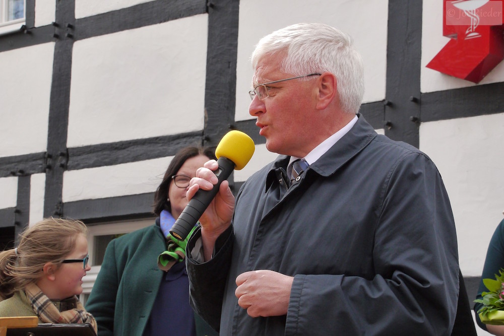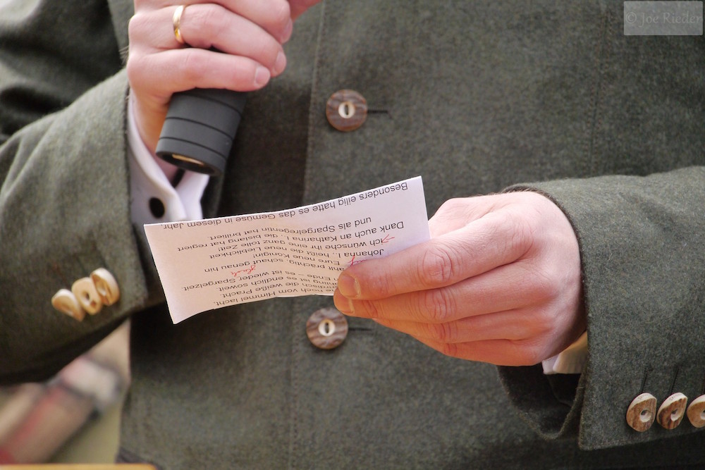 Es sind nur wenige, die vorher den Namen der neuen Spargelkönigin kennen: Das Orga-Team der Interessengemeinschaft Füchtorfer Spargelanbauer, meist Mutter und/oder Vater und … Landrat Dr. Olaf Gericke, der seine Grußworte wie immer in Reimform überbrachte. Wer genau hinsah, konnte auf seinem ausgedruckten Manuskript deutlich den Namen der neuen Königin lesen, deren Bekanntgabe ja erst erfolgte, als Gericke bereits auf der Bühne stand.