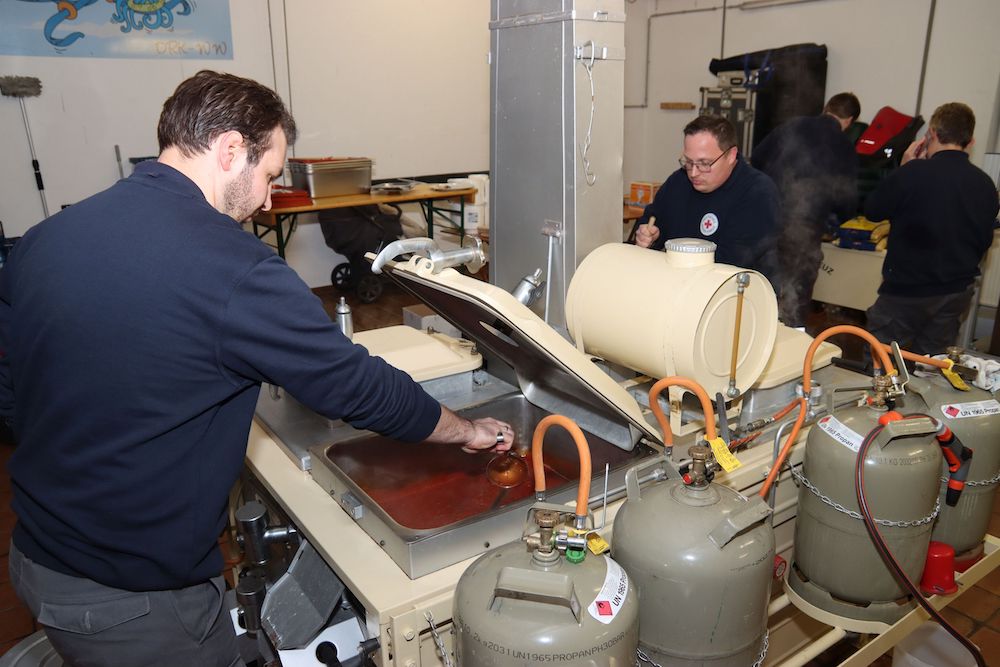 Kreis Warendorf. Damit in einem großen Einsatz mit zahlreichen Einsatzkräften, wie beim Hochwasser in mehreren Orten im Kreis Warendorf, alles läuft, muss an vielen Stellen auch im Hintergrund gearbeitet werden. Wer beispielsweise viele Stunden in der Kälte mit großem körperlichem Einsatz gegen die Fluten kämpft, braucht früher oder später auf jeden Fall auch Verpflegung. Ein heißer Kaffee und eine warme Suppe, um die Kraftreserven aufzufüllen, wirken da oft Wunder. Doch wie genau kommt man eigentlich so schnell an warme Mahlzeiten für teils hunderte Einsatzkräfte? Die Katastrophenschutzeinheiten des Deutschen Roten Kreuzes sind da die Lösung. Sie waren es auch, die über und rund um die Weihnachtstage beim Hochwasser im Kreis Warendorf im Einsatz waren, um die Einsatzkräfte von Feuerwehr und THW zu versorgen.