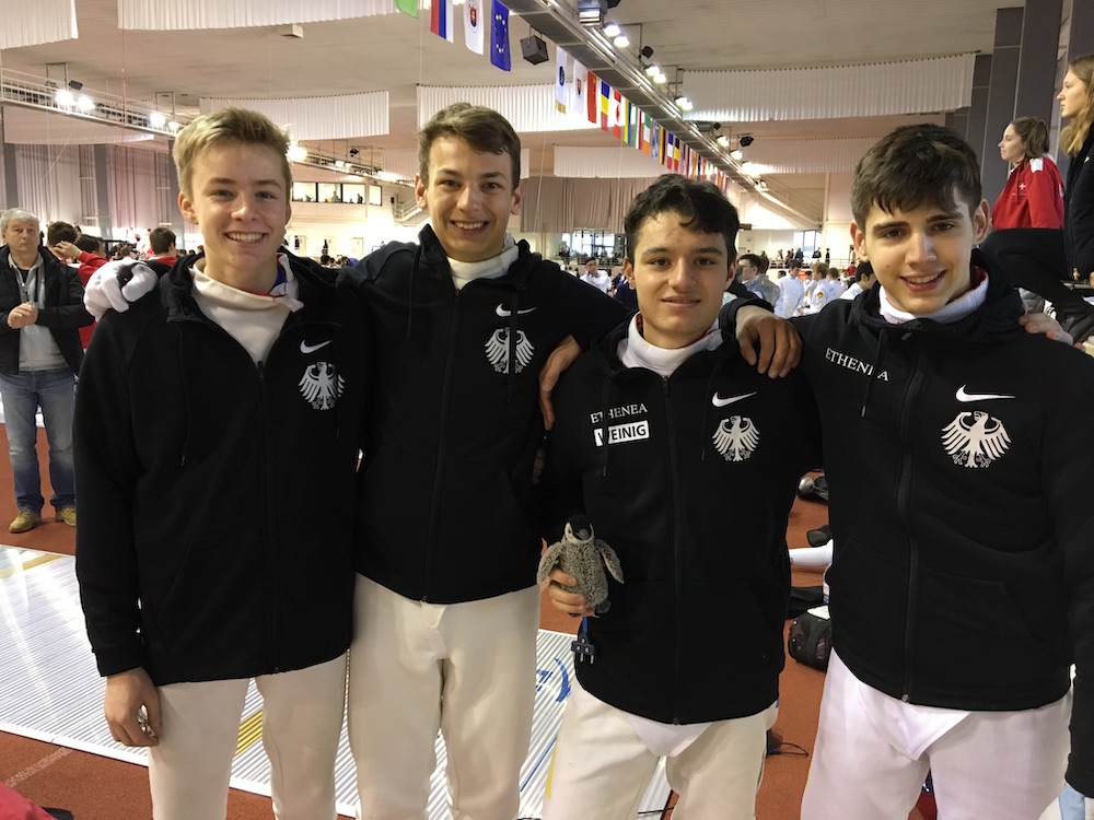 Der Freckenhorster Fechter, Keanu Nagel , hat sein erstes großes Saisonziel erreicht: Die Europameisterschafts- Qualifikation 2019! Der Degenfechter belegte beim großen Cadet Circuit in Bratislava Platz 112, insgesamt 350 Starter kämpften um die letzten Qualifikationspunkte, für Nagel nach langer Verletzungspause eine große Herausforderung , nur 2 Punkte trennten ihn als 3. der Nominierungsrangliste von seinem Verfolger, Sedat Bakay, aus Tauberbischofsheim ! Nach durchwachsener Vorrunde gelang dem Marienschüler sicher der Sprung unter die letzten 128, er bezwang seinen russischen Herausforderer, Semen Zhukov, mit 15:10 Treffern ! Im KO der letzten 128 ließ der Russische Fechter , Kirill Onishchuk, Keanu Nagel kaum eine Trefferchance, Nagel verlor mit 7:15 Treffern! “Eigentlich“ keine sehr ruhmreiche Leistung so Nagel nach dem Turnier:,“Ich wollte es wenigstens unter die letzten 64 schaffen, aber das war hier heute schon Weltmeisterschaftsniveau , mit Startern aller Nationen von Canada , USA über die skandinavischen Länder bis Australien! “ Trotzdem haben die Punkte knapp für die Qualifikation gereicht! Am 20. Februar 2019 startet Nagel mit der Deutschen Fechter-Equipe nach Neapel und von dort geht es weiter zum Wettkampfort nach Foggia! Beim Länderpokal in der Slovakei trat Nagel erstmalig in der Mannschaft „Germany 1“ an! „Mein Dreamteam“ , so Nagel begeistert, “ Ich bin der Jüngste im Team und hatte mir schon zum Saisonstart gewünscht, vorne mit dabei sein zu dürfen. Meine Kaderkollegen werden in diesem Jahr zum Saisonende in die Kategorie ‚Junioren‘ wechseln, für mich also eine tolle Chance, jetzt dabei sein zu dürfen. Drei der vier Nominierten stammen aus Nordrheinwestfalen, Nagels westfälischer Kollege, Cedric Fast, trainiert beim BTG Bielefeld, Nagel und Fast verbindet bereits eine mehrjährige Fechtfreundschaft! Sedat Bakay startet für Tauberbischofsheim und Fabio Murro für den OFC Bonn. In Bratislava erreichte das Team um Kader-Bundestrainer Jörg Fiedler Rang 15 von 72 Teams aus der ganzen Welt! Für das 128-Tableau erhielt Nagels Team ein Freilos und setzte unter den letzten 64 das Team Deutschland 5 mit 45:32 Treffern außer Gefecht. Großer Jubel auch im 32-Tableau, denn auch die Mannschaft Italien 3 bezwangen die motivierten deutschen Fechter mit 45:32! Erst unter den letzten 16 stoppte America 3 mit 45:38 Treffern die deutschen Nachwuchsfechter. „Für unseren Start auf den Europameisterschaften in einer Woche sind wir somit an Platz 8 gesetzt, das ist schon einmal eine gute Ausgangsposition“, so der Freckenhorster Degenfechter. Am 24.02.2019 vertritt Nagel den Deutschen Fechterbund in den Einzelwettkämpfen in Foggia und am 27.02.2019 mit Deutschland 1 im Nationenwettbewerb! „Ich habe mir das gesamte letzte Jahr immer wieder vorgestellt, das ich bei der EM starten kann, bei den vielen verletzungsbedingten Pausen in 2018 war die Qualifikation schon fast dramatisch! Ich bin überglücklich und meinem Heimtrainer Lajos Csire, aus Krefeld, meinen Mentoren und meiner Familie unendlich dankbar für die mega Unterstützung! “ Auf die Frage, welche Erwartungen er denn selber hat: “ Ich möchte vorne mitmischen, einfach alles geben und auf das Quäntchen Glück hoffen, das man manchmal braucht, wenn es mal eng wird“, so Nagel hoffnungsvoll!