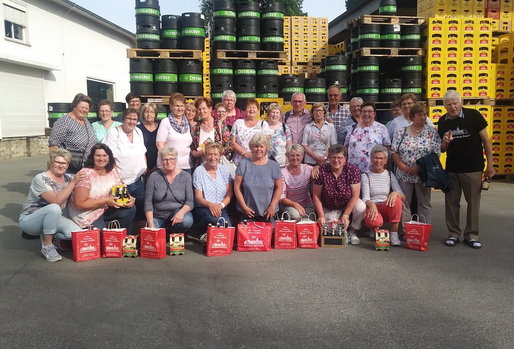 Zunächst stand eine Stadtführung an, bei der uns Fürstin Pauline zur Lippe begleitete. Diese hatte Anfang des 19. Jahrhunderts regiert und ist aufgrund ihres sozialen Engagements auch heute noch hoch geachtet. Sie gründete den ersten . Kindergarten in Deutschland. Nach einer kurzen Pause ging es zur Privat-Brauerrei Strate, wo das bekannte Detmolder Bier hergestellt wird. Die Brauerrei wird von drei Frauen geleitet. Gleich zur Begrüßung gab es eine eigene Kreation, das Detmolder Royal und das Thusnelda Bier. Bei der Anschließende Besichtigung erfuhren die Frauen und drei Männer viel über die Geschichte dieses Unternehmen unf die Herstellung des Bieres. Beim anschließenden Ausklang gab es die Biersorten zum Probieren und als Unterlage Schweinshaxen. Gegen Abend fuhren die Frauen lustig zurück in Richtung Füchtorf und waren beeindruckt, wie Frauen in den verschiedenen Zeiten sich behaupten.
