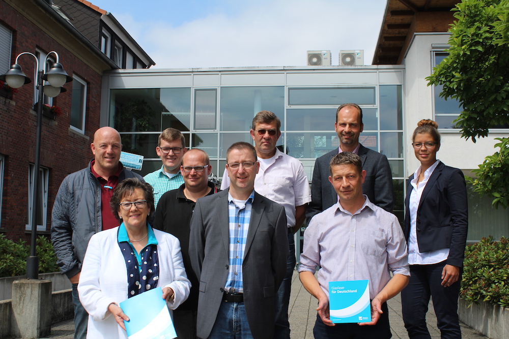 Beelen. In diesen Tagen fand im Rathaus die „Kick-Off“ Veranstaltung zum Glasfaserausbau in der Gemeinde Beelen statt. Neben dem Projektleiter „Bau der Deutsche Glasfaser (DG)“, Herrn Kowalski, konnte Bürgermeisterin, Elisabeth Kammann auch den Projektleiter des Generalunternehmens Siers, Herrn Lubbers und den Bauleiter Herrn Lambers, begrüßen. Herr Kowalski und Herr Lubbers stellten den Ablauf des Ausbauprozesses in Beelen vor. Zunächst werden ab dem 10. Juli die Hausbegehungen durch Mitarbeiter der Firma Siers mit den Eigentümern durchgeführt. Die Termine für die Begehung werden vorab per Telefon oder Mail abgestimmt. Alle Mitarbeiter der Firma Siers verfügen über Ausweise der Firma „Deutsche Glasfaser“. Im Rahmen der Begehung wird mit dem Hauseigentümer abgestimmt, welchen Weg das Glasfaserkabel über das Grundstück nehmen soll und wo der Übergabepunkt im Haus gesetzt wird. Für die Verlegung innerhalb des Hauses ist der Eigentümer in der Pflicht, diesen Weg entsprechend zu gestalten. Anfang August wird der Tiefbau im Ort beginnen. In ca. 40 bis 80 cm Tiefe werden Leerrohre verlegt, in denen anschließend die Glasfasern eingeblasen werden. Mit den Verantwortlichen der DG und der Firma Siers wurde eine enge und zeitnahe Kommunikation vereinbart. Die Anlieger werden so früh wie möglich vor Beginn der Baumaßnahme in ihrer Straße informiert. Zudem kann über den Internetauftritt der Gemeinde Beelen der Stand der aktuellen und geplanten Baumaßnahmen im Ort abgerufen werden. Jede Baukolonne hat einen Ansprechpartner für kurzfristig auftretende Probleme. Dieser ist mit einer andersfarbigen Jacke gekennzeichnet. Die Firma Siers wird darüber hinaus ein Baubüro in Beelen einrichten, in dem ein Ansprechpartner für die Tiefbauangelegenheiten erreichbar ist. Die Kontaktdaten des Baubüros werden gesondert bekannt gegeben. Zunächst wird südlich der B64 begonnen. Auch das Gewerbegebiet wird parallel zum Ortskern sukzessive ausgebaut. Die Tiefbauarbeiten sollen bis Anfang 2018 abgeschlossen sein. Ende September wird das Herzstück des Glasfasernetzes, der so genannte Point-of-Presence (PoP) in Beelen aufgestellt. Von dort aus gehen alle Glasfasern in weitere Verteilerstationen und in die Haushalte. Anschließend werden die Fasern durch eine Spezialfirma im Haus angeschlossen. Geplant ist, dass alle Arbeiten im ersten Quartal 2018 abgeschlossen sind und die rund 1.700 Haushalte, die bereits einen Glasfaseranschluss beauftragt haben, das Hochgeschwindigkeitsnetz nutzen können.