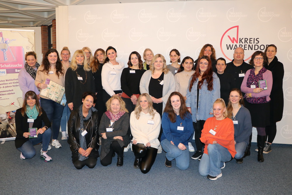Ein weiterer Baustein ist die Weiterbildung von jeweils zwei Erzieherinnen und Erzieher der teilnehmenden Kindertageseinrichtungen, die kürzlich im Kreishaus stattfand. Insgesamt nahmen zwölf Erzieherinnen aus sechs Kitas aus dem Kreis Warendorf teil, vier Erzieherinnen aus der Stadt Bielefeld sowie zwei Erzieherinnen und Erzieher aus der Stadt Bochum teil.