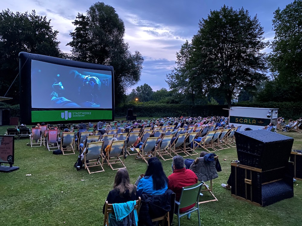 Alte Filmklassiker, beliebte Filme aus den Vorjahren sowie neue Kino-Blockbuster auf einer aufblasbaren 12 x 6 Meter Leinwand gezeigt. Der lichtstarke Projektor, den Kinobetreiber Johannes Austermann bislang ausschließlich für diese Open-Air Events einsetzen kann, erlaubt absoluten Filmgenuss nach Beginn der Dämmerung. Leinwand und Projektor wurden mit Unterstützung der Stadtwerke Warendorf zur Premiere der Mondlichtspiele am 01. Juli 2021 angeschafft.