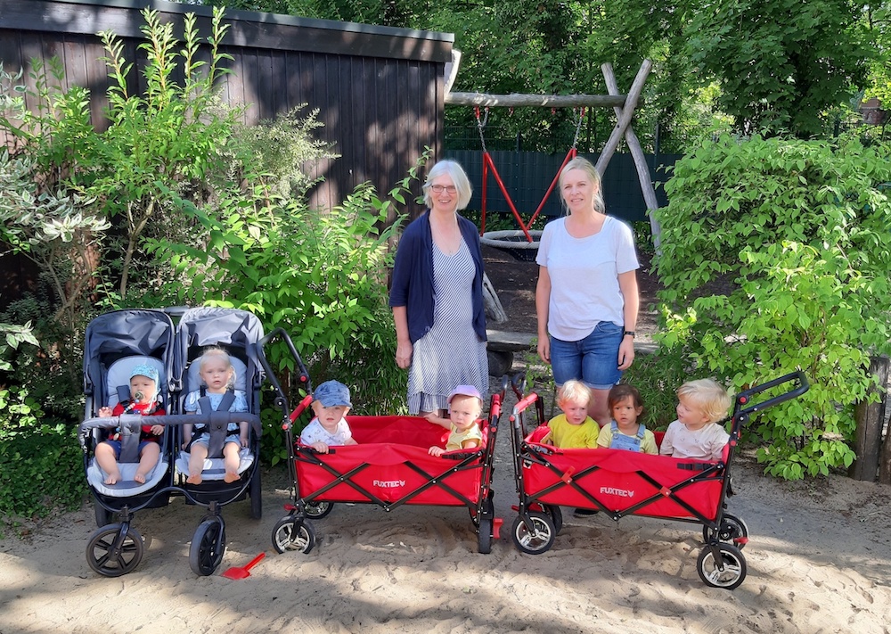 Nachdem der Marien-Kindergarten im April zwei Klappbollerwagen aus Mitteln des Altstadtfonds anschaffen konnte, hat jetzt der Förderverein der Laurentius Kita an der Kirchstraße in der Warendorfer Altstadt über den Altstadtfonds Mittel für den Erwerb von zwei Klappbollerwagen und einen Doppelsitzer Buggy erhalten. Die Bollerwagen und der Doppelsitzer werden zukünftig für Spielplatz- und Picknickausflügen und Einkäufe in der Warendorfer Altstadt eingesetzt. Auch für nahe Ausflüge kann nun ausreichend Wickelzeug, Spielzeug und Verpflegung mitgenommen werden. So haben die Kinder die Möglichkeit, die Spielplätze und neue Ecken in der Warendorfer Altstadt zu entdecken.