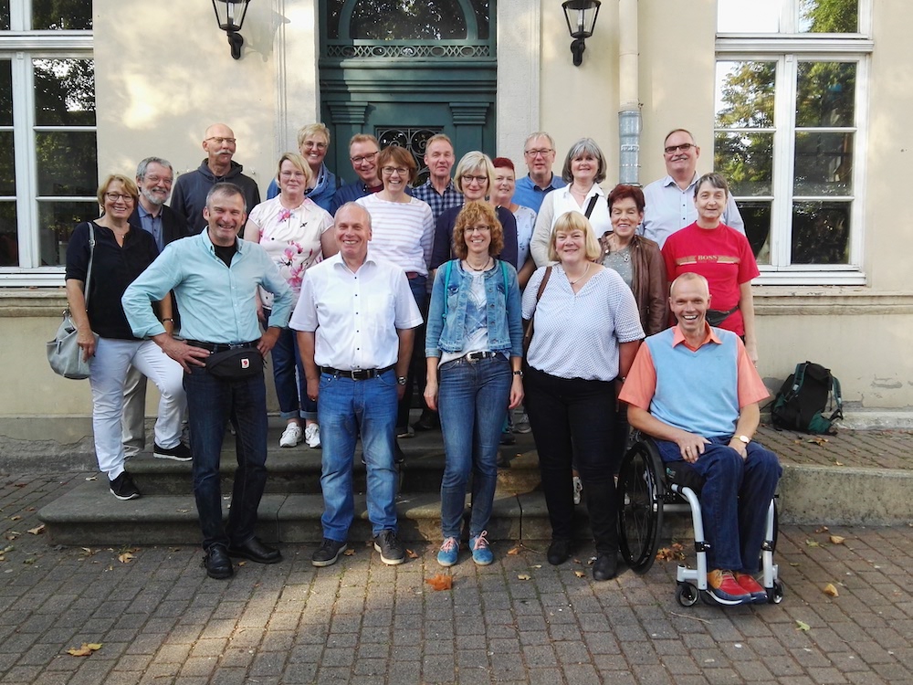„Im Sophiensaal hatten wir noch das erste halbe Jahr Sportunterricht, danach wurden dort wegen Raummangel weitere Klassenräume eingebaut“, erinnerte sich ein Schüler. Im Linoleumboden entdeckten sie noch Spuren der ehemaligen Wände. Im Keller wurden die ehemaligen Toiletten, die kaum noch als solche erkennbar sind, in Augenschein genommen. Zum Schluss erläuterte Peter Hofmeister, ehemaliger langjähriger Leiter der Von-Galen-Schule, den interessierten Ehemaligen die weitere Entwicklung ihrer Schule. Diese war nach 1994 in eine grundständige Realschule mit Aufbauzweig umgewandelt worden. Nach den Informationen brachen alle gut gelaunt zu ihrem nächsten Treffpunkt „Porten“ zum Abendessen auf.
