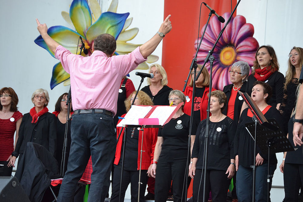„Das Repertoire der Chöre wird bunt gemischt sein, lassen Sie sich über- raschen!“, kündigt Volker Schwarz von der LaGa-Veranstaltungsabteilung an. So ist die GiroLive Bühne am Kneipp-Rondell selbstverständlich einer der Treffpunkte der Sangeskunst. Unterhalb des Gastronomiezeltes wird eine weitere Bühne stehen und am Sonntag erklingen die Stimmen dann auch auf der Bühne vor der Blumenhalle.