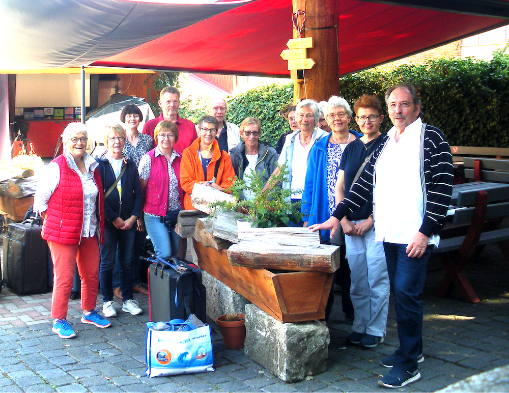 In dem Landhotel in Kammerforst angekommen, wurde die Gruppe von der Inhaberin herzlich empfangen. Da noch nicht alle Zimmer vorbereitet waren, stärkte man sich erst bei Kaffee und Kuchen. Nach dem Kofferauspacken ging es gleich auf eine leichte Wanderung von rund 6 Kilometern zum „Beine vertreten“.