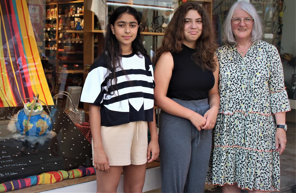 Mit der Unterstützung von Kunsttherapeutin Petra Schürmann entwickelten die beiden elfjährigen Mädchen zuvor in der Kreativwerkstatt eine Weltkugel, auf der ein großer Himmelfahrtsbogen prangt und mit seinen Strahlen Verbindungen zu anderen Kulturen eingeht. Dazu setzten sie einen aussagekräftigen Text.