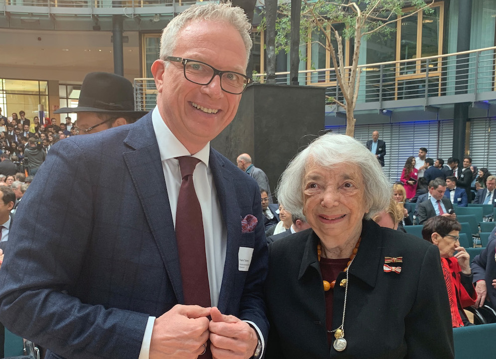 Tief beeindruckt war KH-Hauptgeschäftsführer Frank Tischner von der Begegnung mit „Talisman“-Preisträgerin Margot Friedländer anlässlich der Veranstaltung der Deutschlandstiftung Integration in Berlin zu 70 Jahre Grundgesetz.