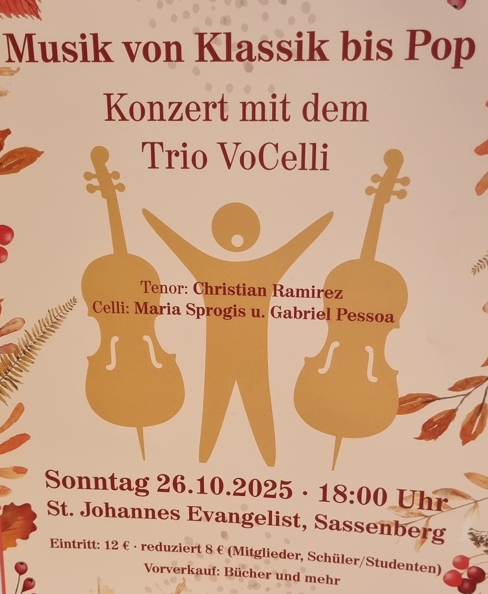 Musikalisch geht es am Sonntag, den 26. Oktober, weiter: In der Kirche erklingen beim Konzert „Musik von Klassik bis Pop“ Werke verschiedener Epochen und Stilrichtungen. Eintrittskarten sind im Vorverkauf in der Buchhandlung „Bücher und mehr“ erhältlich.