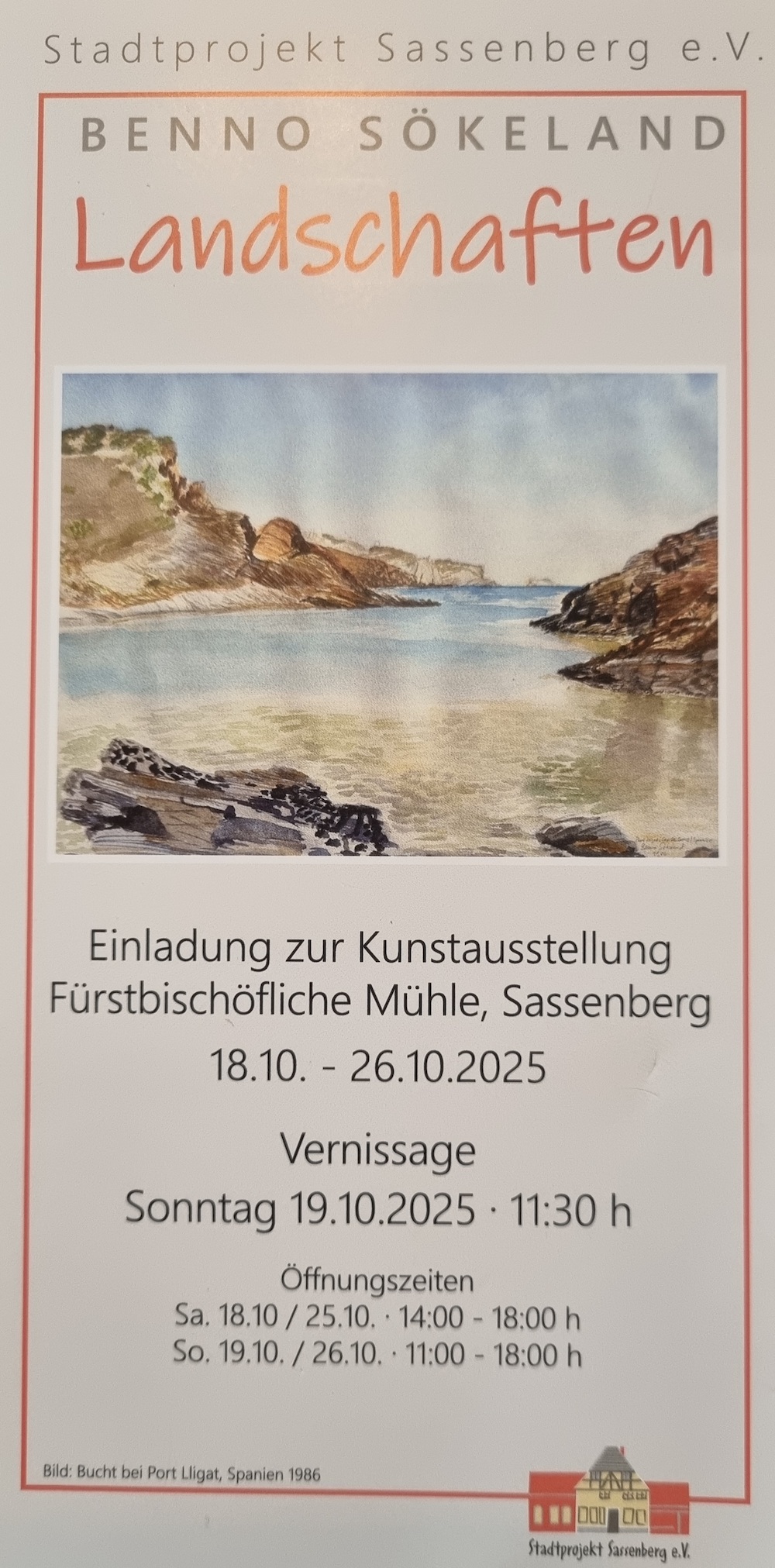 Den Auftakt macht die Kunstausstellung „Landschaften“ von Benno Sökeland, die vom 18. bis 26. Oktober 2025 in der Mühle zu sehen ist. Die Vernissage findet am Sonntag, den 19. Oktober, um 11.30 Uhr statt. Besucherinnen und Besucher dürfen sich auf eindrucksvolle Naturdarstellungen und neue Arbeiten des Künstlers freuen.