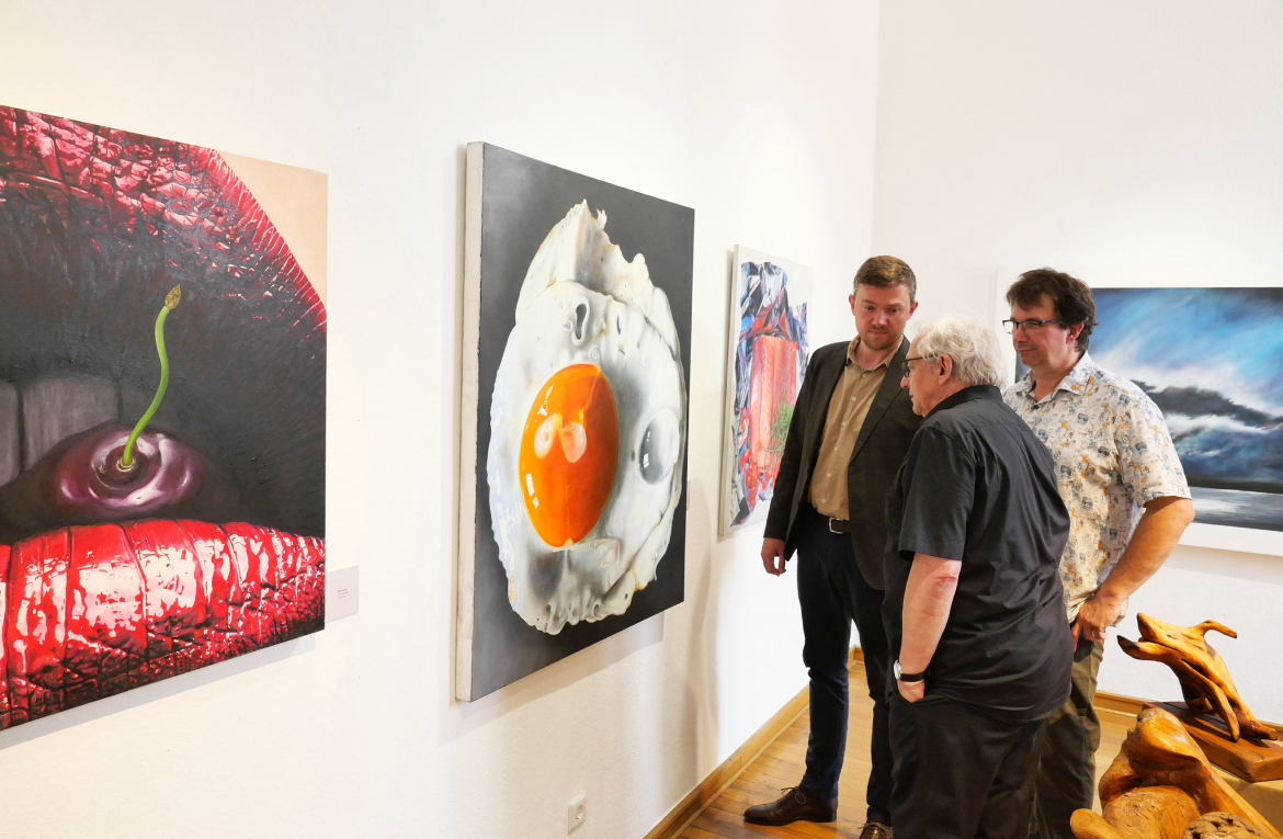 Kronenberg eröffnete die Ausstellung im vollbesetzten historischen Ratssaal ohne Manuskript aber viel Humor und Herz. Er dankte allen Künstlerinnen und Künstlern und stellte die 14 Beteiligten und ihre Werke mit sehr persönlichen Worten vor.