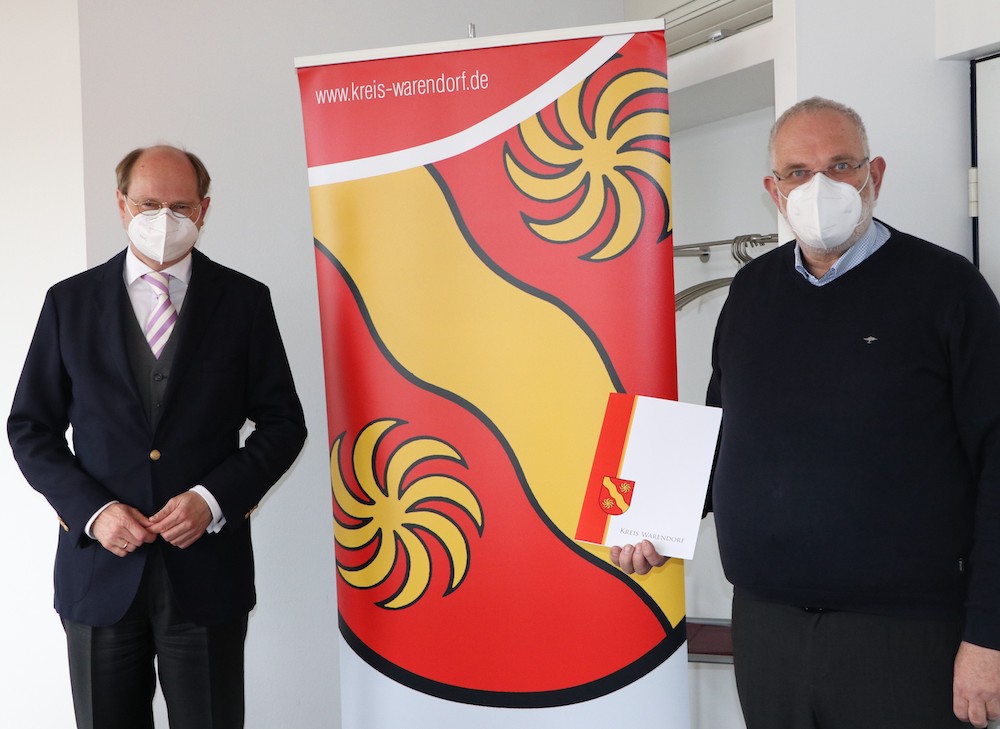 Landrat Dr. Olaf Gericke hat Georg Brentrup aus dem Dienst des Kreises verabschiedet. – (Foto: Kreis Warendorf)