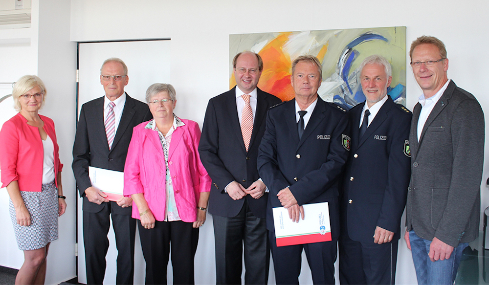 Gisela Nellany als stellv. Direktionsleiterin Zentrale Aufgaben, Luger Wessel, Christa Wessel, Dr. Olaf Gericke, Polizeihauptkommissar Friedhelm Kloth, Polizeidirektor Christoph Ingenohl als Abteilungsleiter Polizei und Jürgen Gausebeck als Mitglied des Personalrates.