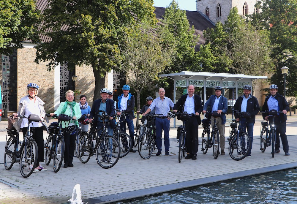 Zur traditionellen Sommerradtour trafen sich Landrat Dr. Olaf Gericke und Bürgermeister Karl Piochowiak mit Vertretern der Kreis- und Gemeindeverwaltung am Rathaus in Ostbevern.