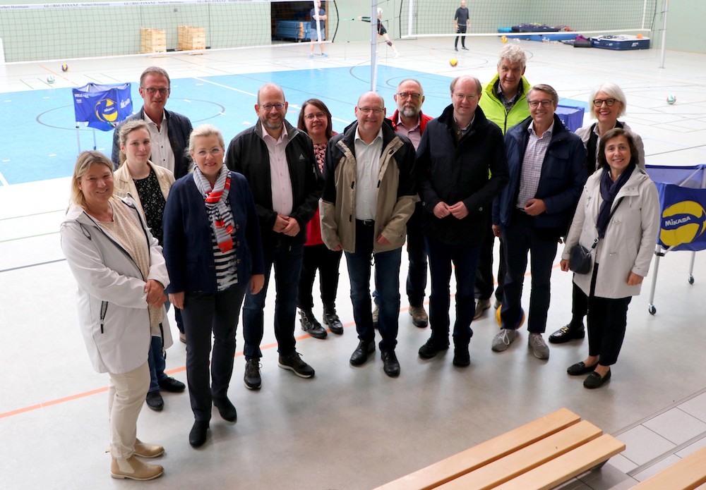 In der nahegelegenen Beverhalle überreichte der Landrat dem Bürgermeister die Genehmigung zur Nutzungserweiterung der Sporthalle. Damit ist es möglich, die Anzahl der Sitzplätze in der Halle zu erhöhen, z.B. bei Volleyball-Bundesligaspielen des BSV.