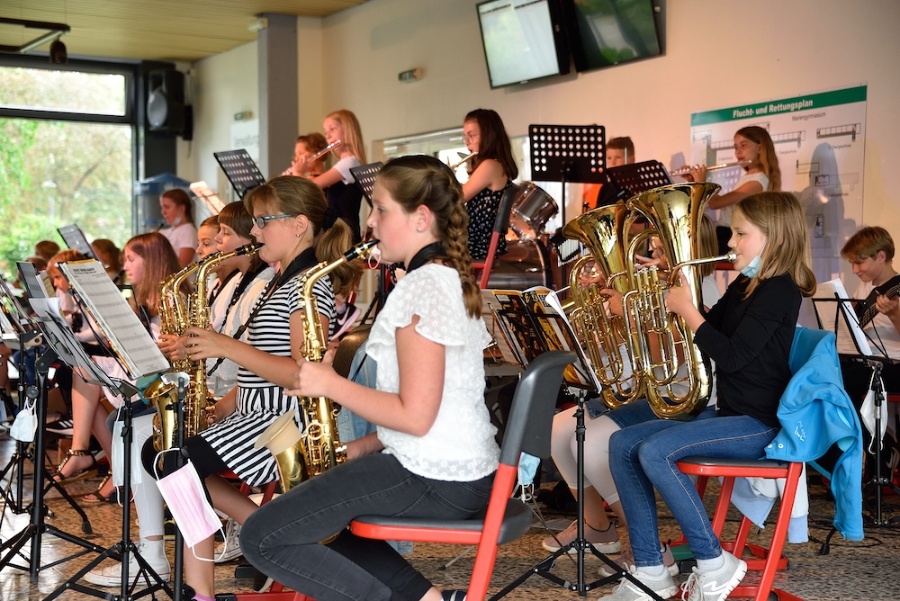 Lang ersehnter Auftritt der Bläserklassen – Die Bläserklassen des Mariengymnasiums geben ein Sommerkonzert im Kleinen