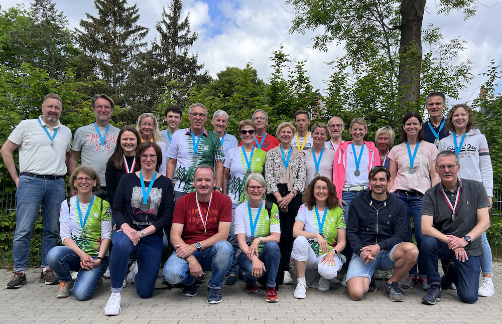 - Auf dem Bild (v.l.): Thomas Feldhues, Anke Terörde, Ralf Buse, Janne Lehmann, Gisela Röttger (vorne), Tanja Meimann, Jerik Lehmann, Bernhard Schmallbrock, Christian Meimann, Willy Rothaus, Rita Sennhenn-Wienhold, Claudia Latoschinski, Thomas Lambrecht, Margit Fercher, Benjamin Siegmund, Daniela Wieck (vorne), Christina Fercher, Ewald Wiesmann, Judith Lütke-Besselmann, Julian Tatje, Petra Hauschild-Tatje, Stephanie Pigisch, Frank Roes, Armin Düpmeier und Paola Feldhues – (Foto: WSU Lauftreff)