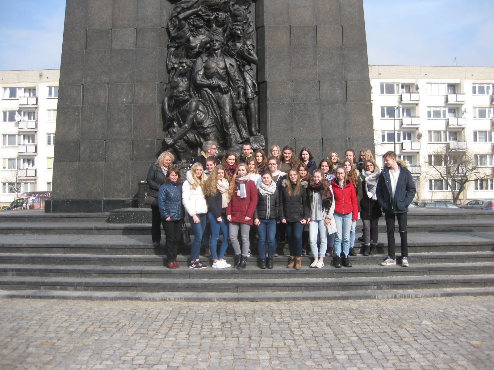 Neben dem offiziellen Empfang durch den Bürgermeister der Stadt sowie den stellvertretenden Landrat trafen sich deutsche und polnische Schülerinnen und Schüler zu gemeinsamer Projektarbeit, Hospitation im Unterricht, einer Exkursion in die nahegelegene schlesische Hauptstadt Wroclaw/Breslau und sportlichen Aktivitäten beim Eislauf. Den Höhepunkt bildete zweifellos eine Fahrt in die Hauptstadt Warschau mit einer Übernachtung in der polnischen Metropole. Die Stadtbesichtigung vermittelte den Schülerinnen und Schülern in eindrucksvoller Weise, wie die Stadt nach der Zerstörung im 2. Weltkrieg systematisch wiederaufgebaut worden ist, die Altstadt, seit 1980 UNESCO Kulturerbe, aber auch der Königsweg mit seinen Repräsentationsbauten, Palästen, Parks und Alleen.