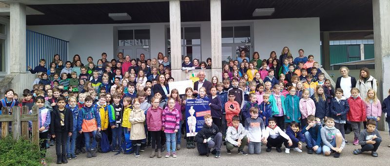 Umgesetzt haben diese Idee dann die Lehrerinnen Kirsten Sachse und Claudia Böckmann. Sie integrierten das Seilchenspringen in ein kleines Sportfest am 27. April, bei dem verschiedene Bewegungsangebote auf dem Schulgelände gemacht wurden. Organisiert hatten sie auch 200 Springseile, die von den Mädchen und Jungen zu einer sportlichen „Challenge“ genutzt wurden: Es galt, zwei Minuten möglichst ununterbrochen möglichst oft zu springen. Die Ergebnisse wurden für jedes Kind festgehalten, aufgeschrieben und von den Kindern zu Hause den Sponsoren, sprich Eltern, Großeltern, Paten und sonstigen Willigen, präsentiert. „Herausgekommen ist dabei die erstaunliche Summe von mehr als 8.000 Euro“, so Kathrin Sellmeier. Die Hälfte davon, genau 4.066,50 Euro, geht laut Beschluss der Elternpflegschaft an „Deutschland hilft“, die andere Hälfte an die Aktion Kleiner Prinz.