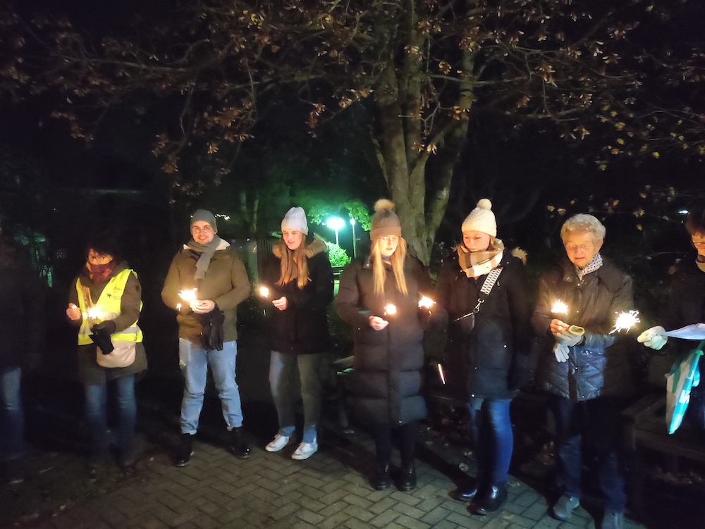 Die Gruppe ließ mit ihren Lichtern das Dunkel erhellen.An der Johannesschule wurde eine Geschichte erzählt..Dann ging es weiter zum Altenzentrum, wo die Sterne im Mittelpunkt standen.