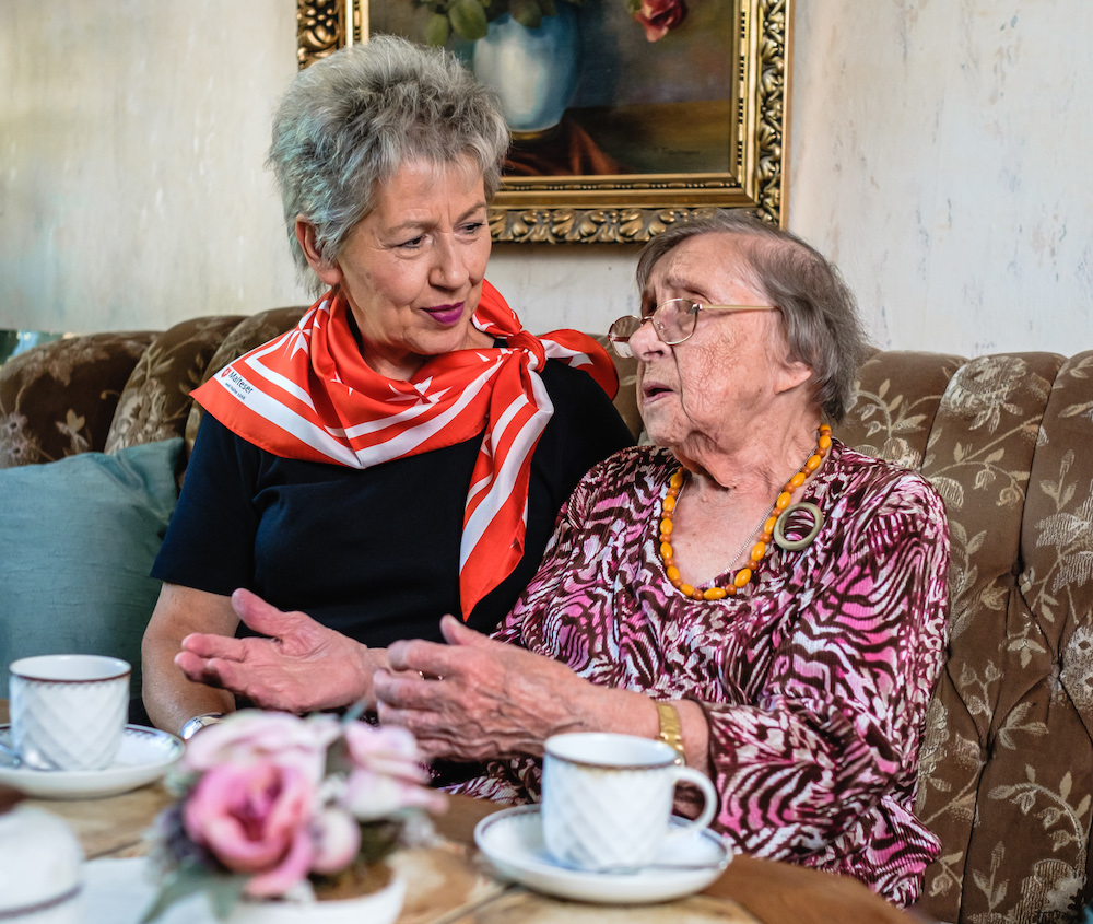 Malteserhelferin besucht ältere Dame
