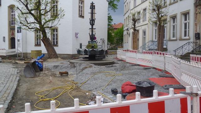 Den aufmerksamen Beobachtern der Baustelle ist sicherlich aufgefallen, dass seit letzter Woche ein größerer Bereich des Marktplatzes abgesperrt wurde. Grund dafür ist, dass jetzt der Rangierbereich der Baustellenfahrzeuge abgesperrt werden muss, um sicherzustellen, dass die Passanten auf dem Marktplatz nicht gefährdet werden.