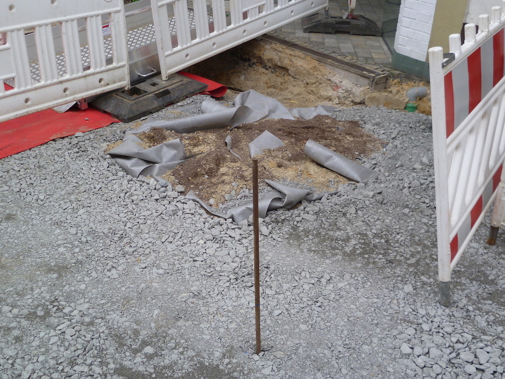Seit gestern sind auf der Marktplatz-Baustelle nun zwei Arbeitskräfte mehr eingesetzt, um das Team zu verstärken und die Arbeiten in zwei Kolonnen schneller weiterzubringen. Die zweite Kolonne wird nun die Hausanschlüsse an der Westseite des Marktplatzes vorziehen. Ab nächster Woche rückt zusätzlich eine drei-Mann-starke Pflasterkolonne an, die die gesamte Ostseite des Marktplatzes pflastern wird. Durch diese Neuorganisation und die zusätzliche Manpower wird der Bauablauf beschleunigt. Bereits abgeschlossen sind die Arbeiten an der Hauptgas- und Wasserleitung auf der Ostseite. Auch die Pflanzgruben für die Bäume sind angelegt worden.