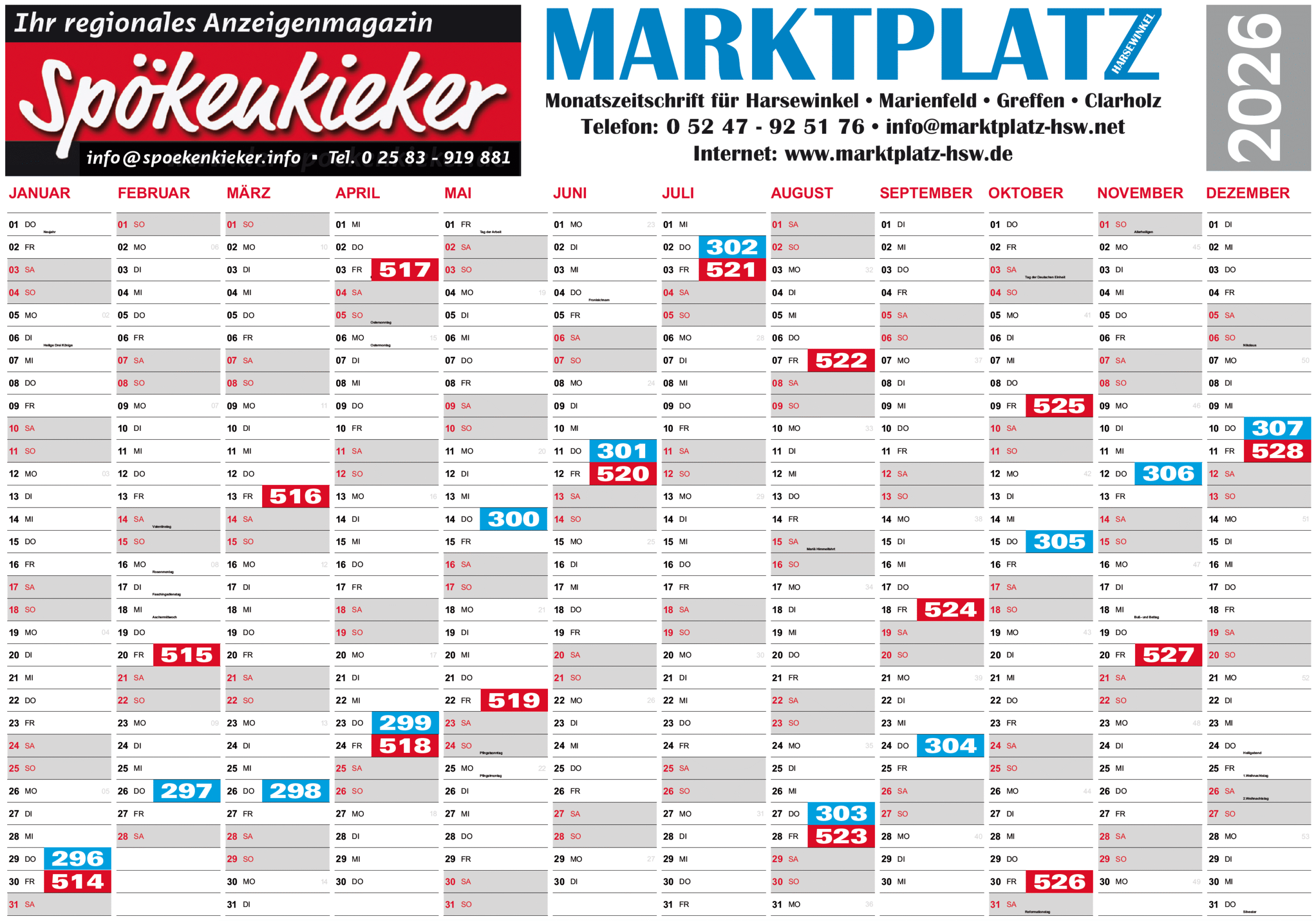Spökenkieker (rot) und Marktplatz (blau) Termine für 2026: