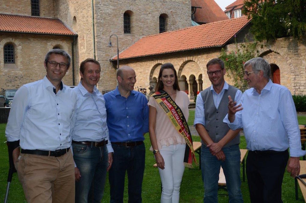 Nach der Ziehung stellten sich die Projektgruppenmitglieder der Orgelbaulotterie zum Gruppenphoto mit Miss Germany auf: von links nach rechts: Michael Amsbeck, Rechtsanwalt;Thomas Dinkela;Jan-Bernd Lammers; Miss Germany 2016; Dirk Landwehr, Hermann Flothkötter