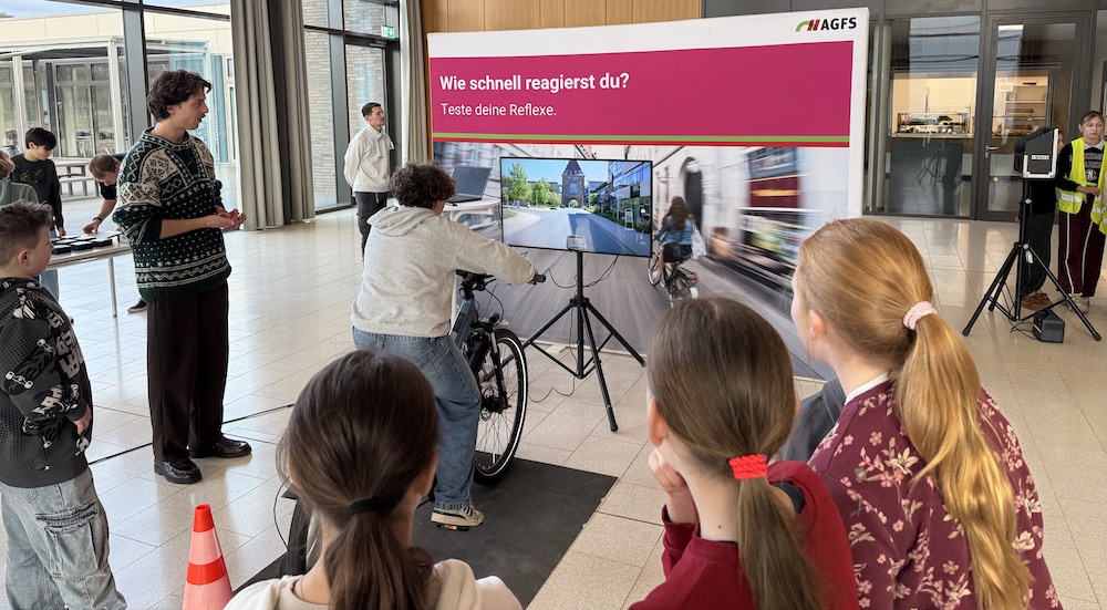 Besonders viel Spaß machten den Schülerinnen und Schülern die Übungen mit dem Radfahr-Simulator, bei dem reale Verkehrssituationen erprobt wurden, als auch der Reaktionstest des AGFS.