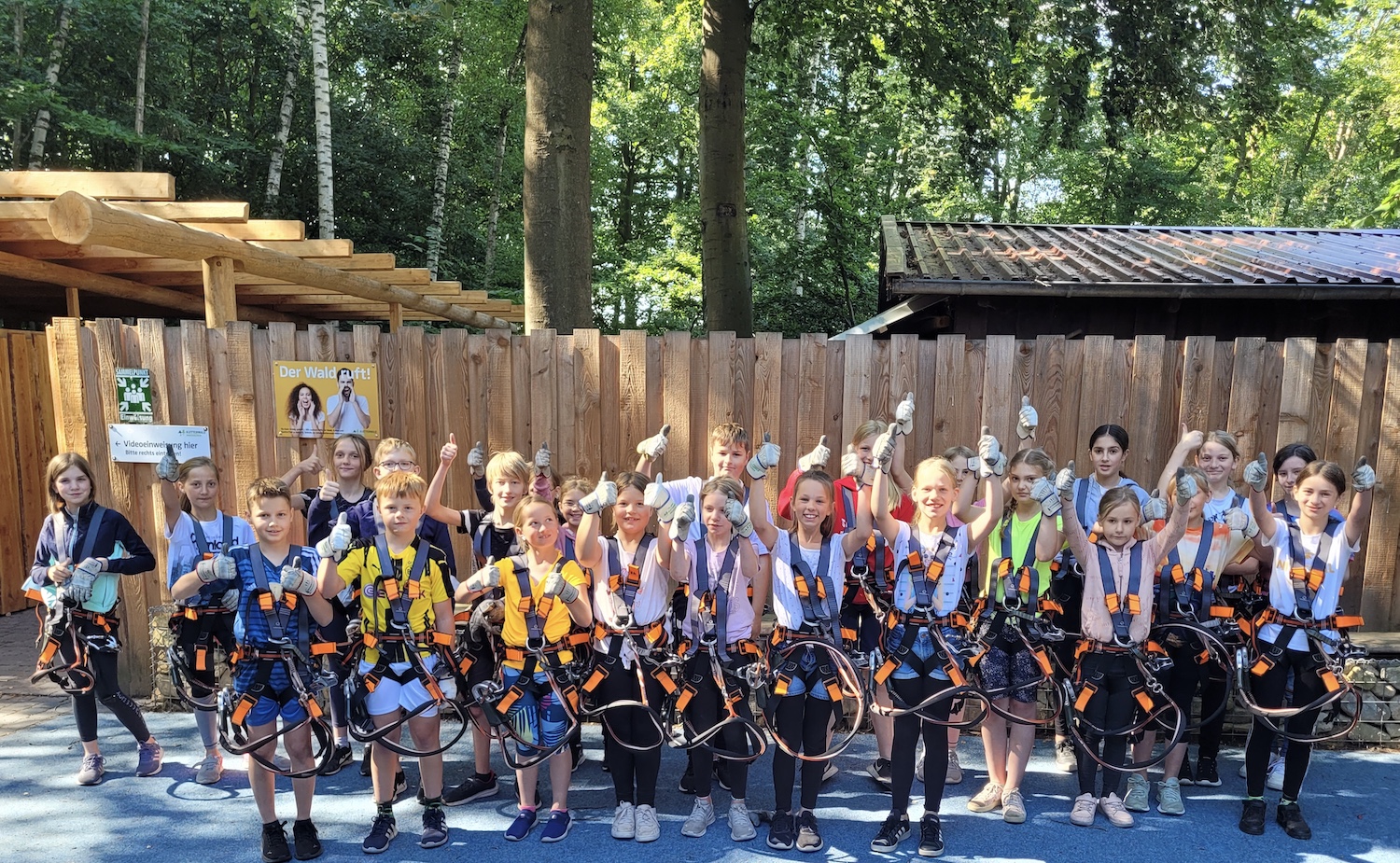 Bei bestem Wetter und mit reichlich Verpflegung startete der Ausflug morgens am Mühlenplatz in Sassenberg. Nachdem auch die Füchtorfer Kinder am Tie abgeholt wurden, fuhr man direkt nach Ibbenbüren. Dort angekommen ging es nach einer Sicherheitseinweisung auch direkt hoch hinaus. In bis zu 14 Meter Höhe zeigten die Kinder Begeisterung und vor allem eine große Portion Mut. Drei Stunden lang konnten selbstständig Parcours in unterschiedlichen Schwierigkeitsstufen beklettert werden. Zu den 145 Kletterelementen zählen u.a. Seilbahnen, Tarzan-Sprünge und Balancier-Elemente. Zwischen den Parcours konnten die Kinder sich mit Muffins, Kuchen und Waffeln sowie reichlich Getränken stärken.