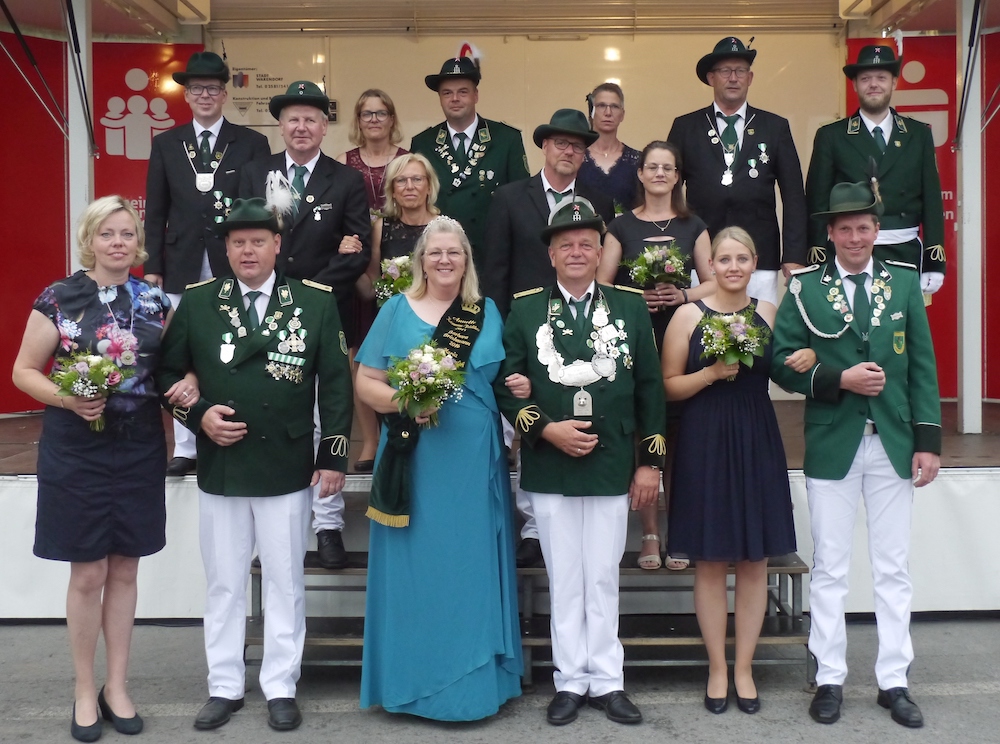 Bei Christian Schulze Zumloh und seiner Königin Silke liegen die Dinge etwas anders. Wenn nicht noch kurzfristig so etwas wie 2020 und 2021 dazwischen kommt –wovon nicht auszugehen ist – ist die Zeit des Abschieds vom Amt gekommen. Am Sonntagmittag, dem 25. Juni 2023, ab 14:00 Uhr wollen die potentiellen Nachfolger des amtierenden Königs auf den Vogel anlegen und als Träger der Königskette aus dem Tag hervorgehen.