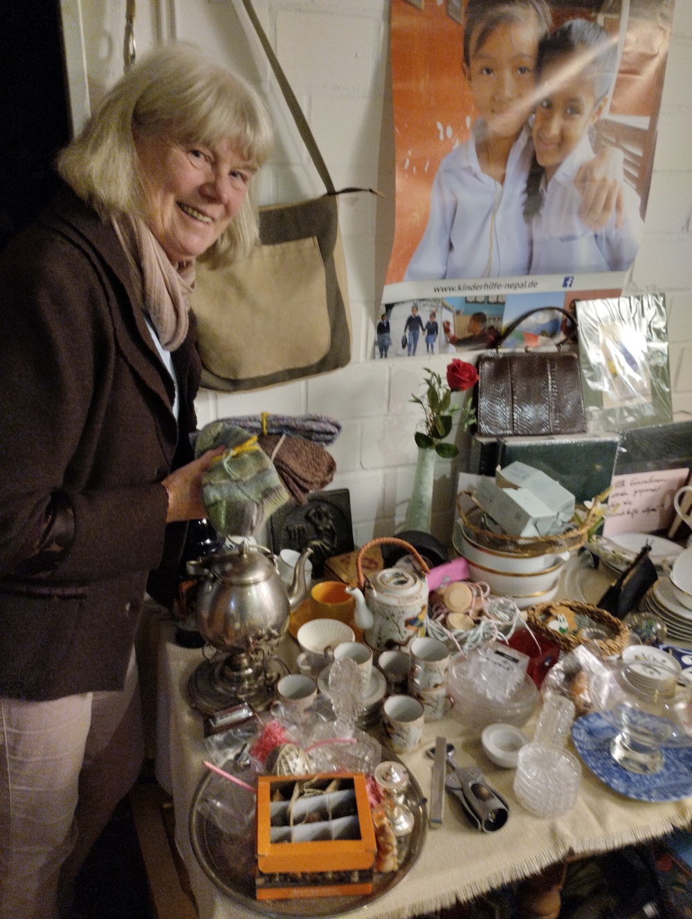 Dank toller Unterstützung von Dr. Anja Wolff und ihren Kindern, die selbstgestaltete Briefkarten verkauften und Anne Franzgrote mit selbstbemalten Kastanien, ergänzend zu Monika Lucht`s Trödelstand vor der Sparkasse, war der Fettmarkt-Trödel ein riesiger Erfolg für die Kinderhilfe Nepal e.V. Auch der Kürbisverkauf von Resi und Reinhard Schnucklake meldet ein neues Rekordergebnis.