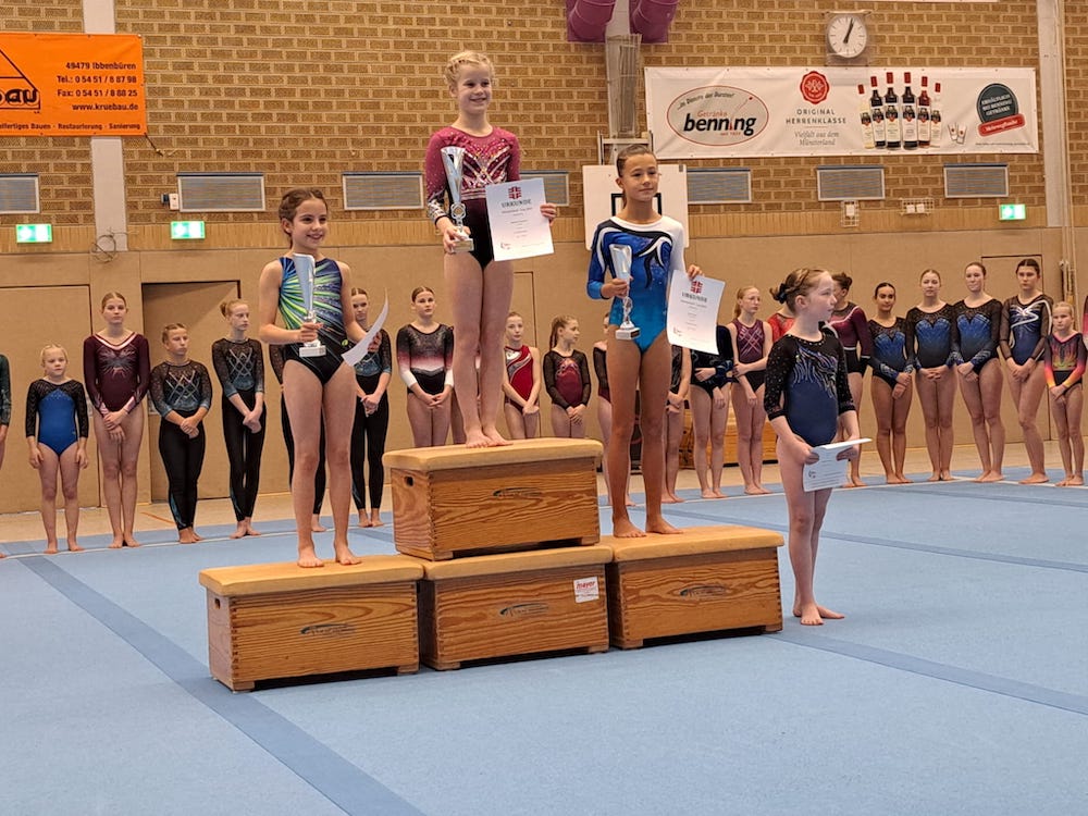 Nach den Bezirkseinzelmeisterschaften folgte am Samstag, 16.11.2024 der Münsterland-Cup in Laggenbeck. In zwei Durchgängen gingen sieben Turnerinnen des TUS Freckenhorst in ihren jeweiligen Alters- und Leistungsklassen an den Start. Zweimal Silber und ein Bronzeplatz nahmen die Tuslerinnen mit nach Hause.