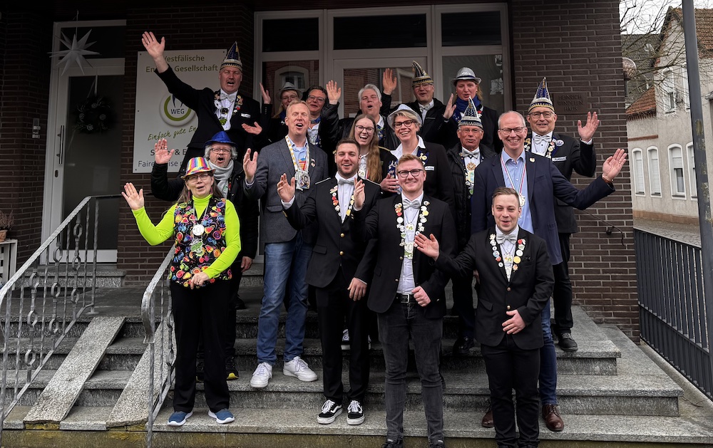 „Silber-Blau Helau!“ – das hat in der CDU-Geschäftsstelle gute Tradition. Immer am Morgen nach Altweiber kommen die Jecken von der KG Silber-Blau Freckenhorst zu einer Stippvisite am Stiftsmarkt vorbei und bringen jede Menge gute Laune mit!