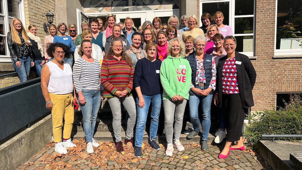 Susanne Matic (vorne rechts) und Natascha Schröder (l.) mit den Kindertagespflegepersonen beim diesjährigen Fachtag in Warendorf.