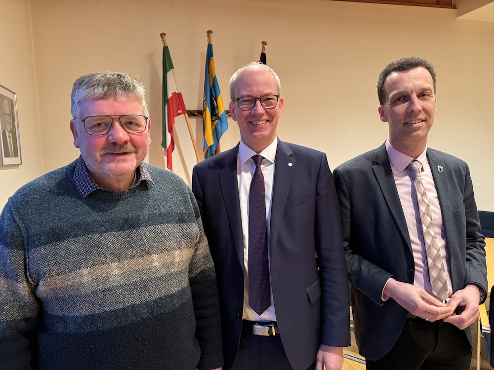 Wie stellt sich die Situation in der Gemeinde Beelen zum Jahresbeginn 2024 dar? Im Gespräch mit Bürgermeister Rolf Mestekemper (r.) und Robert Strübbe von der CDU-Fraktion informierte sich der Landtagsabgeordnete Daniel Hagemeier (M.) über die Eckpunkte der Gemeindefinanzierung.