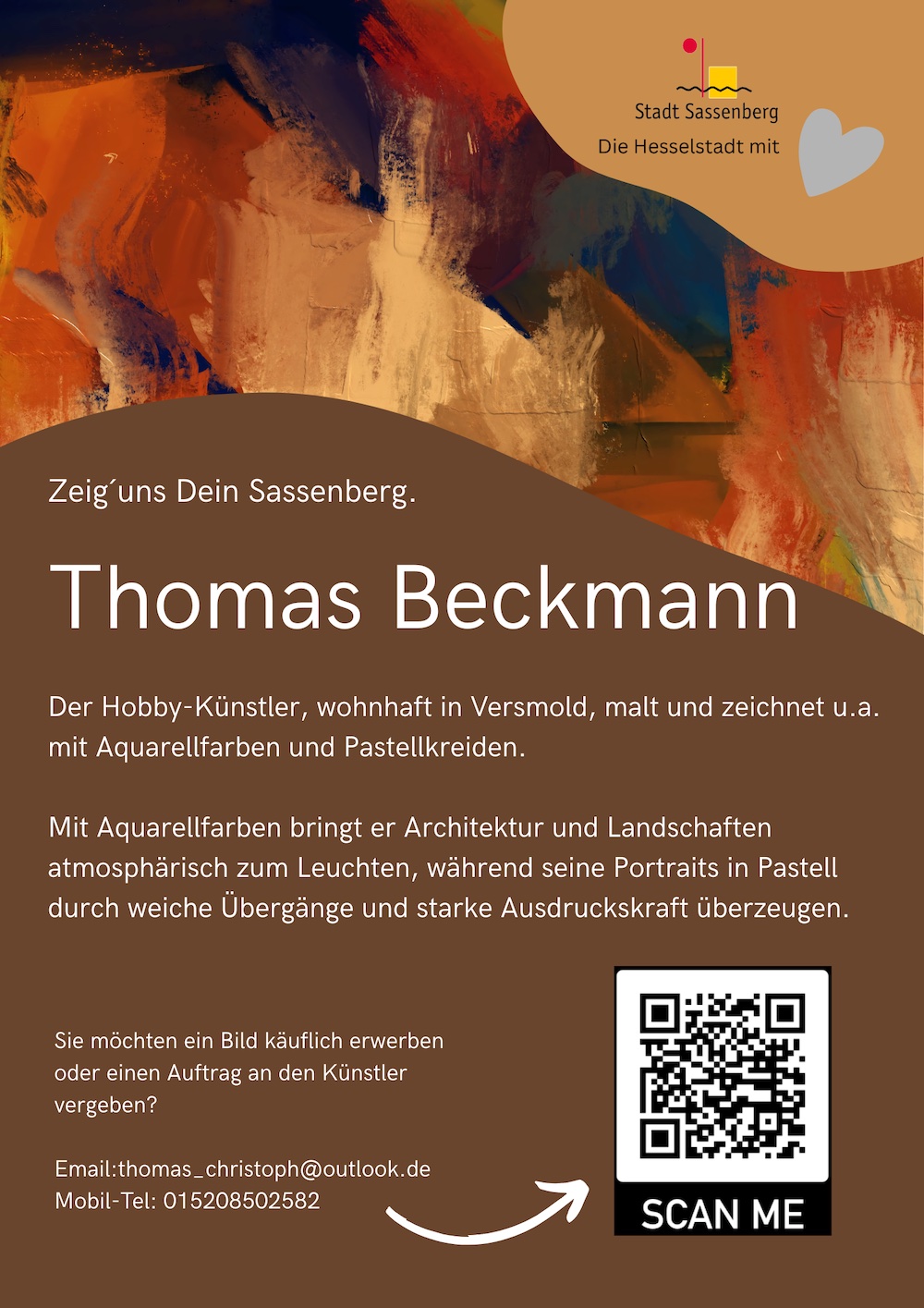Die Ausstellung im Heimat-Fenster lädt dazu ein, beim Vorübergehen innezuhalten und die Vielfalt künstlerischer Handschrift aus der Region zu entdecken. Sie zeigt, wie viel Kreativität in der unmittelbaren Nachbarschaft steckt – und wie schön Sassenberg ist.