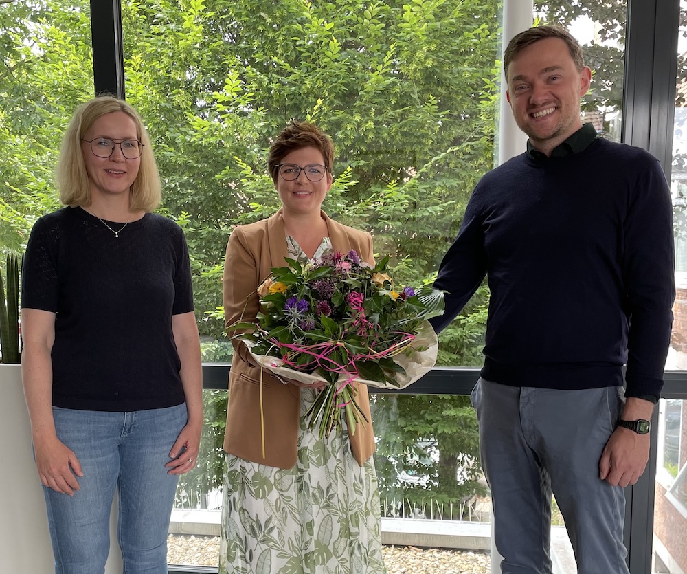 Auf dem Foto zu sehen (v. l.) Silke Middendorf, Leiterin Haupt- und Personalamt Regina Höppner, Leiterin Dezernat Bürgerdienste (ab 01.08.23) Bürgermeister Peter Horstmann