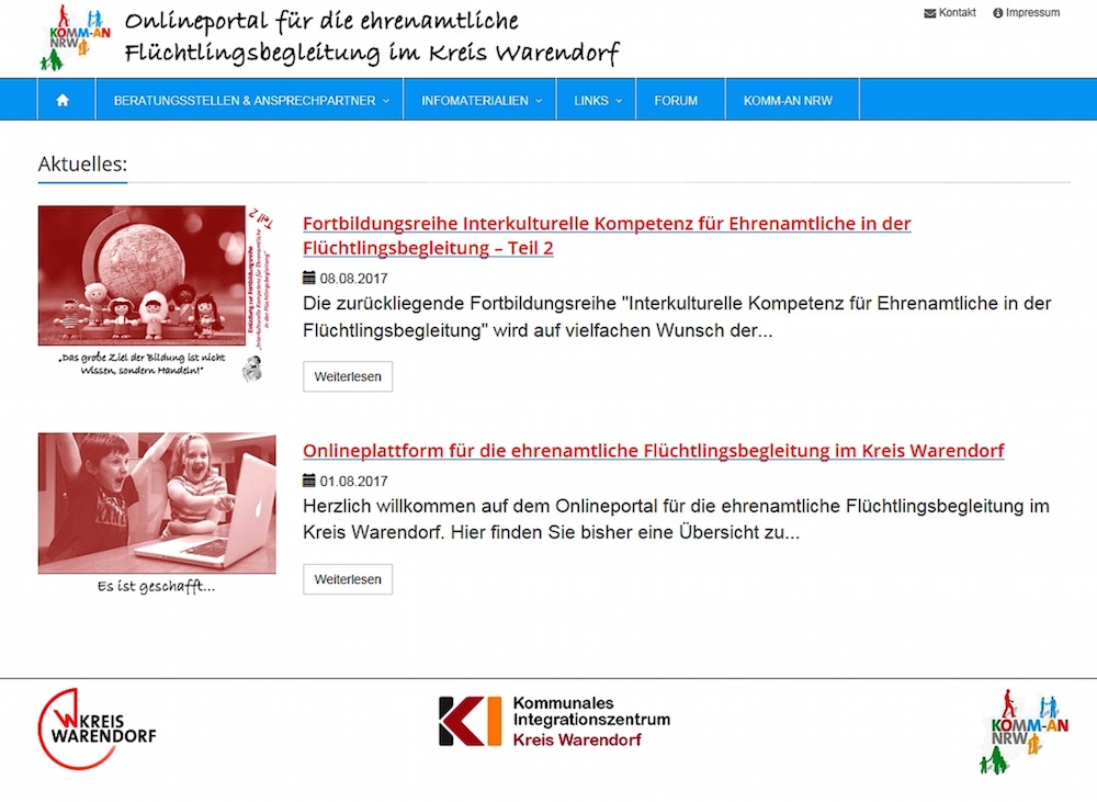 In dem neuen Portal für die ehrenamtliche Flüchtlingsbegleitung im Kreis Warendorf ( www.komm-an.kreis-warendorf.de ) sind auch Informationen zu der Fortbildungsreihe zu finden.
