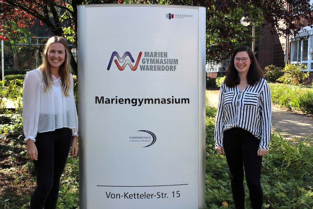 Alle halbe Jahre wechseln die Praktikanten am Mariengymnasium Warendorf. Die aktuellen, sogenannten „Praxissemester“ kommen aus der näheren Umgebung. Jana Hüser hat am Thomas-Morus-Gymnasium in Oelde ihr Abitur gemacht und studiert in Münster im Studiengang Master of Education die Fächer Mathematik und Sozialwissenschaften. Mit Lehrer Karl Kurschat, der vor einem Jahr vom TMG an das Mariengymnasium gewechselt ist, konnte sie daher ein bereits bekanntes Gesicht an ihrer Praktikumsstelle begrüßen. Das Mariengymnasium sei ihre erste Wahl gewesen, räumte die in Ennigerloh wohnhafte Studentin bei der Vorstellungsrunde ein. Der zweite Neuzugang ist Franzi Puthen. Sie studiert die Fächer Englisch und Italienisch. Franzi Puthen ist in ihrer Freizeit als Handballerin beim Verein Westfalia Kinderhaus in der Landesliga aktiv. Wie Jana Hüser hofft sie auf interessante Einblicke in ihr zukünftiges Berufsfeld. Beide wurden herzlich von ihren Betreuern Julia Bosse und Patrick Droste begrüßt. Das Mariengymnasium freut sich die neuen Gesichter innerhalb der Schule zu sehen und wünscht den Studentinnen für die kommenden Monate viel Erfolg.