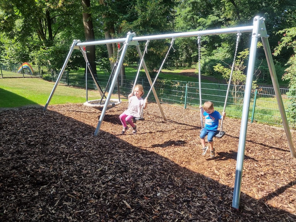 Dank einer großzügigen Spende der Volksbank und VIA Stiftung der Volksbank konnte nun final die Anschaffung einer neuen Schaukelanlage für den neu angelegten Außenbereich des Kindergartens St. Johannes Sassenberg realisiert werden.