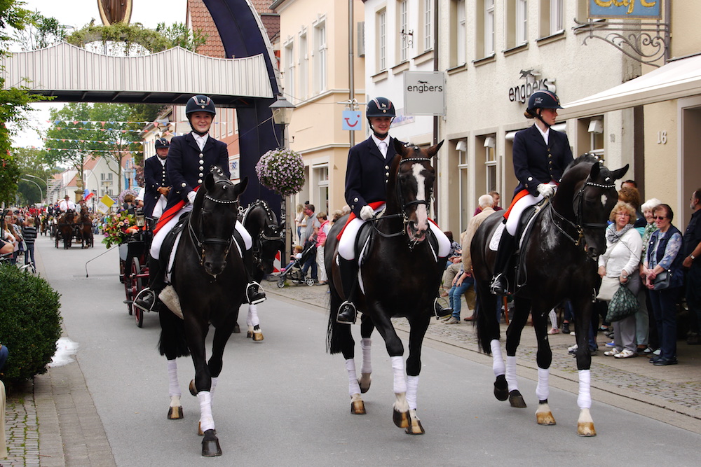 Zum 10. Mal findet in diesem Jahr in Warendorf die Pferdeprozession statt. Von Anfang an beliebt und jährlich mit beeindruckenden Teilnehmer- und Zuschauerzahlen. Und so wie bei der ersten Auflage des Nachfolgers der Warendorfer Bogenritte, musste auch in diesem Jahr ein Ausweg gefunden werden. War es seinerzeit der Regen, der den Startplatz Lohwall extrem aufgeweicht hatte, ist es in diesem Jahr die unselige Dauerbaustelle auf dem Marktplatz, wegen der ein neues Ziel gefunden werden musste.