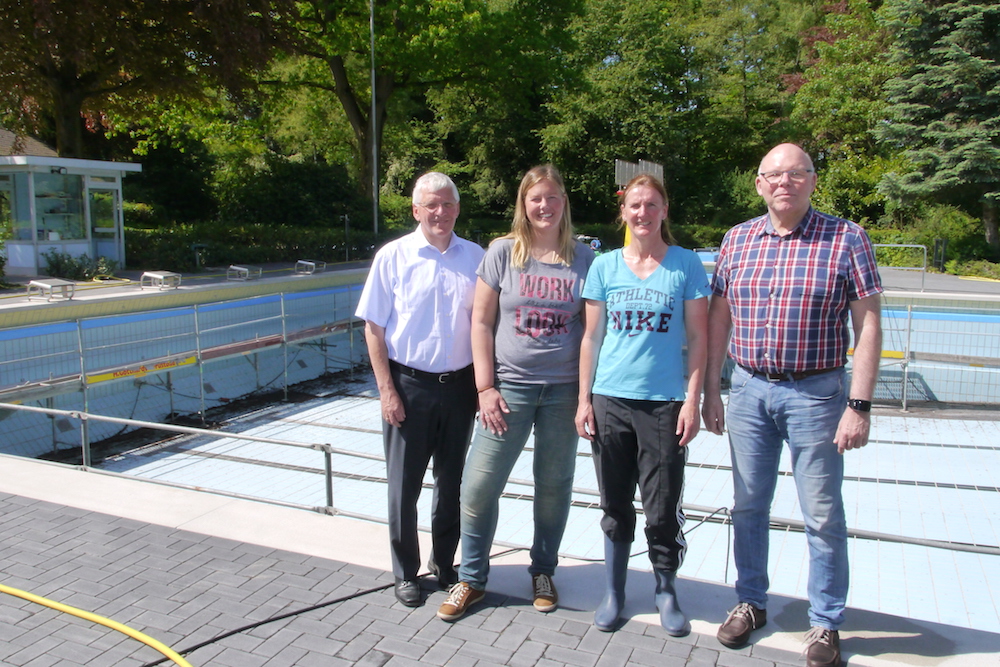 Die Arbeit hat sich gelohnt – Bürgermeister Josef Uphoff, Ilona Hagedorn, Ute Ruetz und Martin Kniesel sind überzeugt, dass das renovierte Schwimmbad den Besuchern gefallen wird