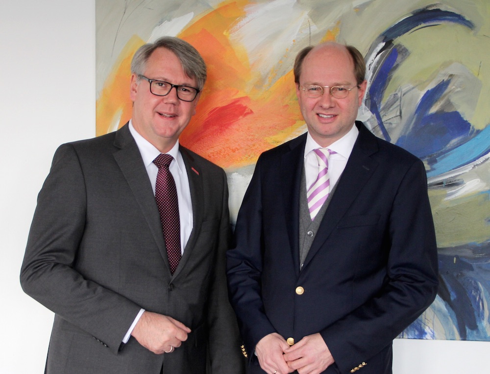 Der neue Hauptgeschäftsführer der Handwerkskammer Münster (HWK), Thomas Banasiewicz, kam auf Einladung von Landrat Dr. Olaf Gericke zum Antrittsbesuch in den Kreis Warendorf. „Ich freue mich auf eine weiterhin engagierte Zusammenarbeit zum Wohle der heimischen Wirtschaft und der Bürger in einer starken Region“, begrüßte Dr. Gericke den Gast im Kreishaus.