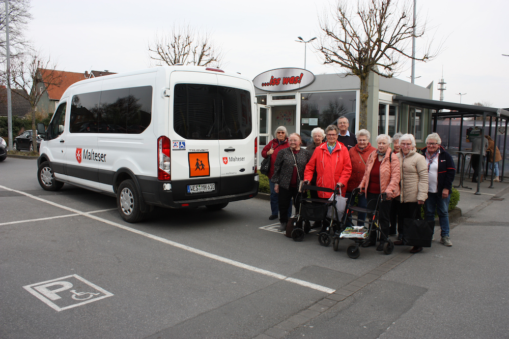 Seit Ende März können die Warendorfer Malteser ein neues Fahrzeug zu ihrem Fuhrpark zählen – einen Ford Transit mit elektrohydraulischer Hebebühne. So sind die Malteser in der Lage, auch Rollstuhlfahrern den Service des „mobilen Einkaufswagens“ anbieten zu können. Seit 2012 ermöglicht der Seniorenfahrdienst älteren Menschen mehr Lebensqualität durch Mobilität. „Der Fahrdienst holt die Teilnehmer zu Hause ab, fährt sie zum Marktkauf und zu den umliegenden Geschäften und begleitet sie auf Wunsch auch beim Einkaufen“, erklärt Theo Rüter, Leiter der Seniorenfahrdienste. „Wer möchte, bleibt anschließend mit der Gruppe noch zum Klönen auf eine Tasse Kaffee im Café Hosselmann. Es gibt aber auch Gruppen, die nach dem Einkaufen sofort nach Hause fahren. Auf Wunsch bringen wir auch die Einkäufe ins Haus“, so Rüter weiter. Zurzeit fahren insgesamt elf ehrenamtliche Helfer und Helferinnen jeweils mittwochs und donnerstags die Einkaufsrunde mit vier Gruppen zu verschiedenen Zeiten.