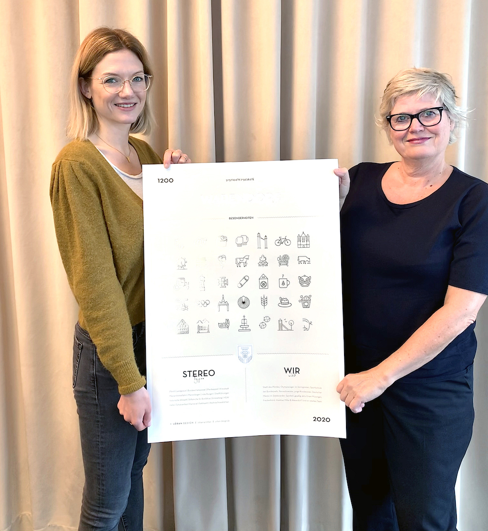 Jedes Icon hat seine besondere Bedeutung. Das Plakat soll Warendorfer einladen, gemeinsam über die Bildelemente zu fachsimpeln, sofern deren Intention nicht sofort jedem klar ist. Es soll Menschen zusammenbringen und Warendorf zum Gesprächsthema machen.“, so Urban weiter. Eine besondere Wertigkeit bekommt das Poster durch die großflächige goldene Prägung. Auch Claudia Körk,