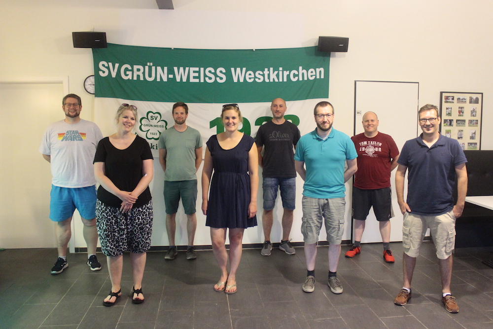 Auf dem Bild von links nach rechts: Josef Reinke (1.Vorsitzender), Daniela Schloetmann ( Kassenprüferin), Jens Witte ( Jugendwart) Laura Mentrup (2. Vorsitzende), Andreas Böhnke (Beisitzer), Thomas Schimmelpfennig (Besitzer), Thomas Hortmann ( Kassenprüfer) und Michael Wösthoff ( Kassenwart) Den Vorstand komplettiert Vanessa Gabrisch ( Schriftführerin )