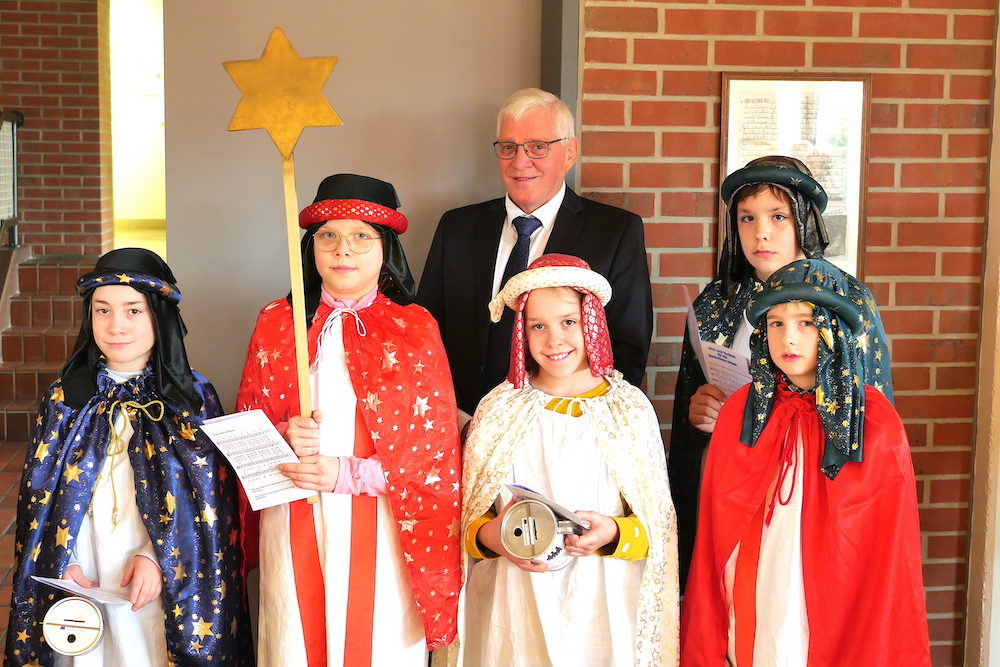 Auch im Jahr 2025 durfte sich Bürgermeister Josef Uphoff auf dem Neujahrsempfang über den Besuch einiger Sternsinger freuen